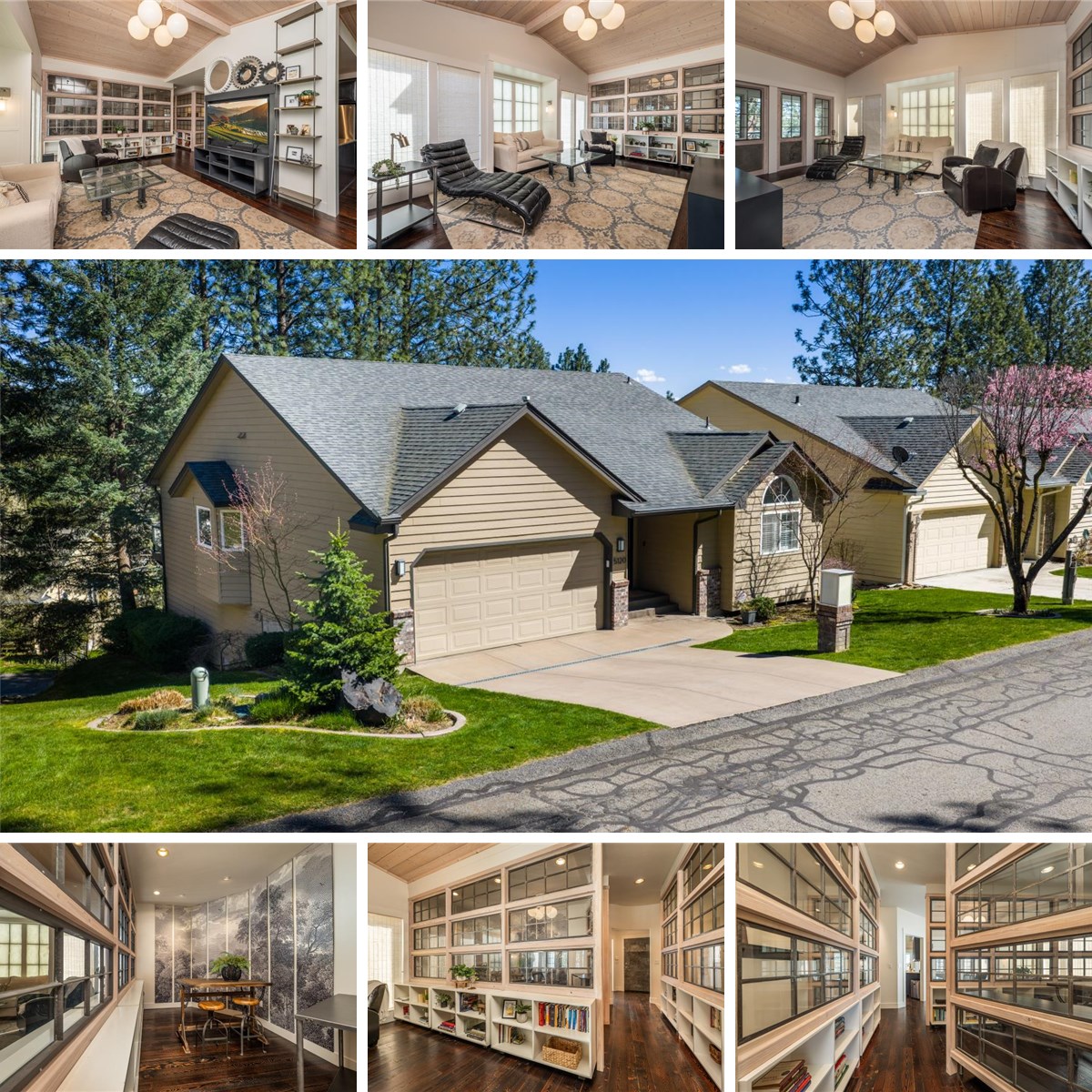 Exceptional, architecturally redesigned home by one of Spokane’s premier architects—truly one of a kind. Thoughtfully curated with refined custom details throughout, this residence offers both sophistication & effortless livability. The main floor features a light-filled living room, a stunning glass-enclosed study, an elegant kitchen & dining area, a sunroom, a serene primary suite, guest bedroom, & convenient main-floor laundry. The lower level is designed for comfort & flexibility, offering two expansive family rooms, a private guest suite, & generous storage spaces. Enjoy low-maintenance living with HOA-covered yard care, snow removal, & common area upkeep. Community amenities include a pool, hot tub, pickleball/tennis courts, & RV storage. Tucked away on a quiet cul-de-sac, this home showcases a newly built deck with integrated LED lighting, creating a warm, elevated outdoor living experience—perfect for evening entertaining—while capturing beautiful city & mountain views. VIDEO TOUR: https://vimeo.com/1181073788